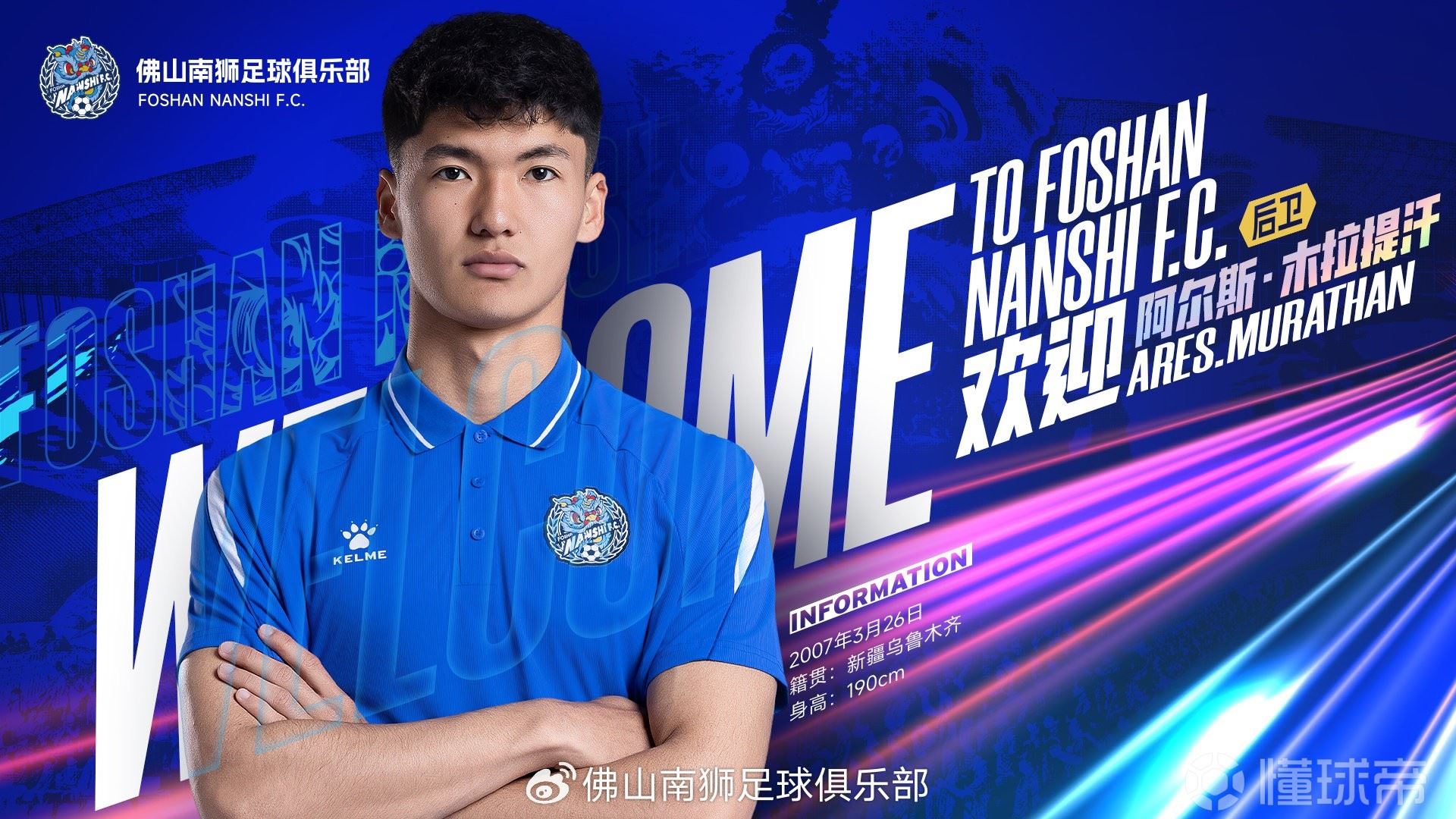 经与球员本人友好协商并达成一致,即日起,后卫球员阿尔斯-木拉提汗正式加盟佛山南狮足球俱乐部。 即日起,他将身披佛山南狮战袍,随队征战新赛季的各项赛事。俱乐部坚信,这位年仅18岁的后防新星的加入,将为球队的防线注入新的活力与硬度。