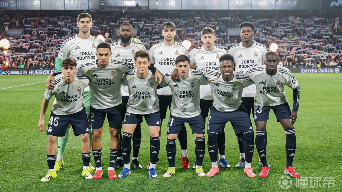 西甲第27轮,皇家马德里客场对阵塞尔塔,赛前,皇马首发球员身穿特制球衣合影,为遭受重伤的队友罗德里戈送上支持。
