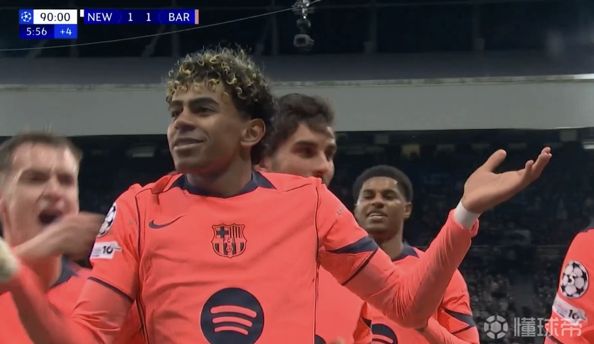 此役客场对阵纽卡斯尔联,亚马尔在比赛第96分钟主罚点球破门,帮助巴塞罗那1-1战平对手。