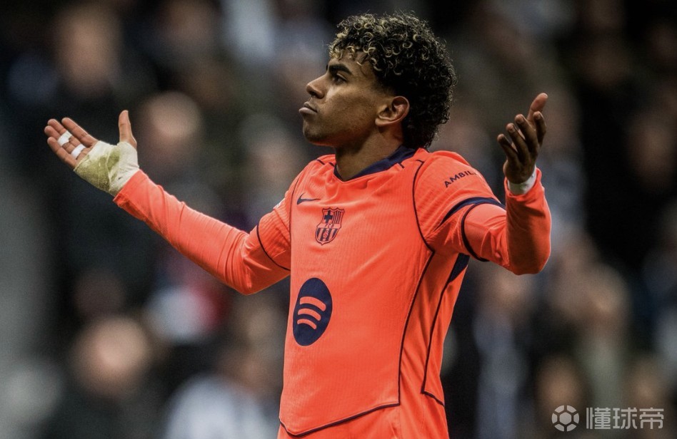比赛最后时刻,奥尔莫在禁区内被绊倒,亚马尔骗过纽卡守门员将点球稳稳罚进。