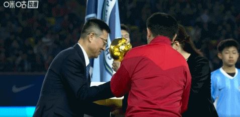 火神杯交接仪式,海港代表将奖杯交还给中足联