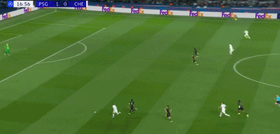 第40分钟,登贝莱1挑2低射破门,巴黎2-1切尔西