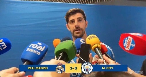 本赛季欧冠1/8决赛首回合,皇马主场3-0战胜曼城,库尔图瓦赛后在混合区接受了采访。