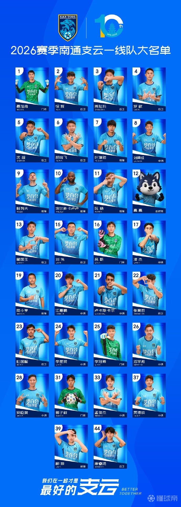 北京时间3月11日,中甲俱乐部南通支云公布了2026赛季一线队的大名单,