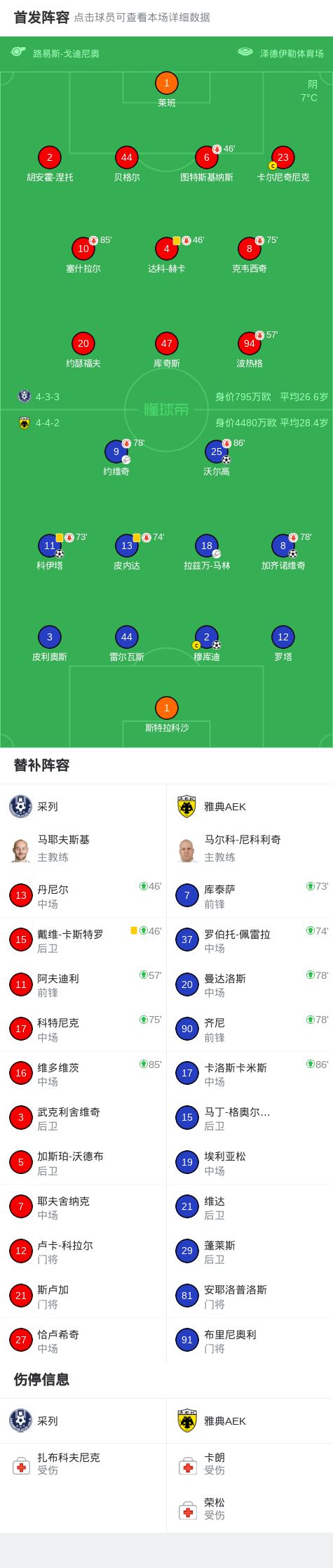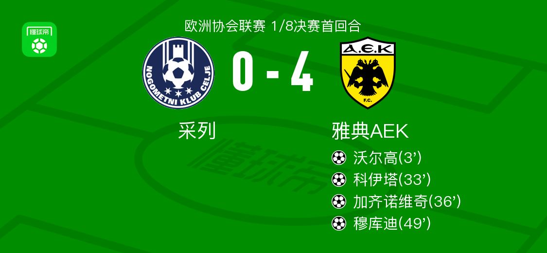 北京时间3月13日欧洲协会联赛 1/8决赛首回合,采列对阵雅典AEK。雅典AEK沃尔高破门,科伊塔破门,加齐诺维奇破门,穆库迪破门。最终比分采列 0-4 雅典AEK。