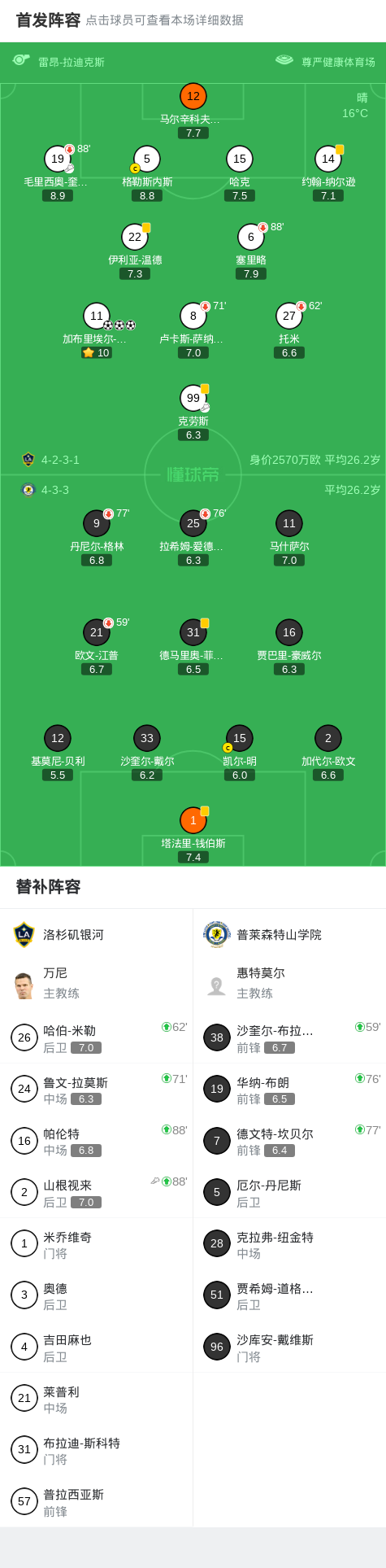 下半场补时第6分钟,洛杉矶银河球员克劳斯助攻加布里埃尔-佩茨打入一球。