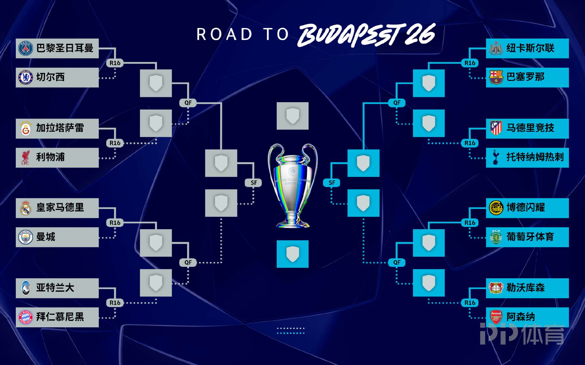 欧冠晋级8强概率: