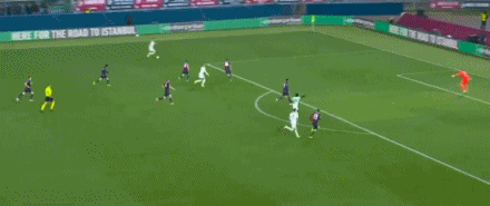 第41分钟,贝尔纳代斯基禁区外兜射,门将飞身扑救