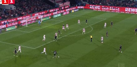 第45+5分钟,将功补过!奥利塞助攻格纳布里小角度破门,科隆1-1拜仁