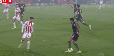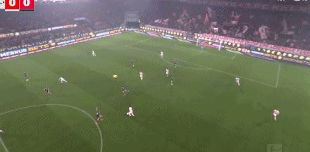 第41分钟,格纳布里失误被断,马伊纳带球反击远射破门!科隆1-0拜仁