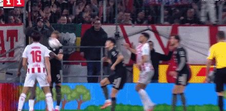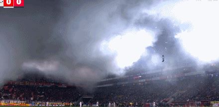 第4分钟,球迷燃放烟火影响视线,比赛短暂暂停