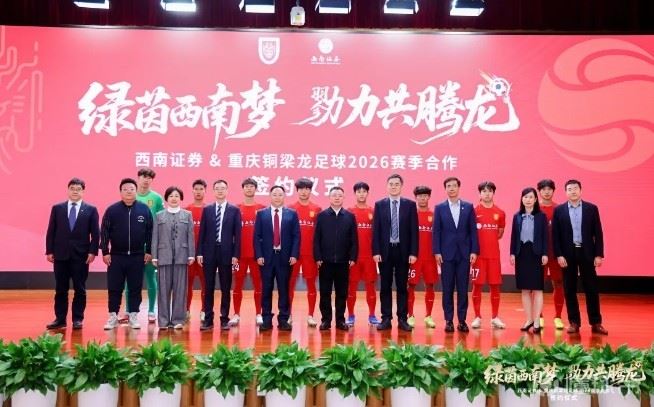 金融的稳健力量与足球的热血激情在此碰撞交融,西南证券公司正式官宣成为重庆铜梁龙足球俱乐部2026赛季独家首席合作伙伴,双方携手开启“金融+体育”深度融合的全新篇章,以专业赋能体育发展,以热血传递山城精神,共赴中超新赛季的荣耀征程。