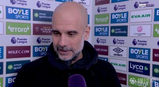 英超第30轮,曼城客场1-1战平西汉姆联,曼城主帅瓜迪奥拉赛后接受了拜因体育的采访。