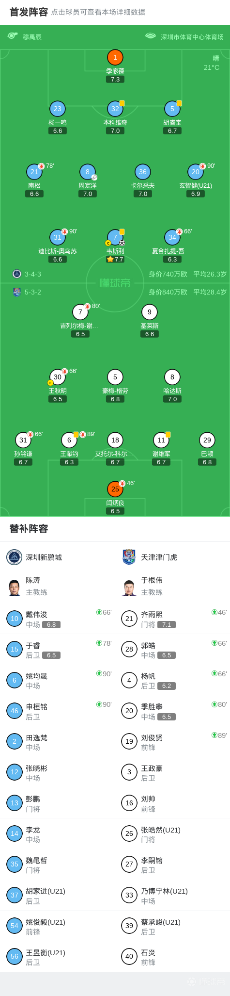 北京时间3月14日中国足球超级联赛第2轮,深圳新鹏城主场对阵天津津门虎。上半场奥乌苏屡次打门造险,下半场韦斯利破门+中柱,戴伟浚打门造险。最终比分深圳新鹏城 1-0 天津津门虎。