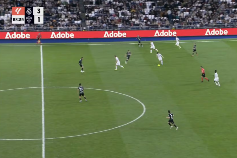2025-26赛季西甲,皇马在伯纳乌球场大胜埃尔切,比赛最后时刻还诞生了一粒足以载入史册的进球。