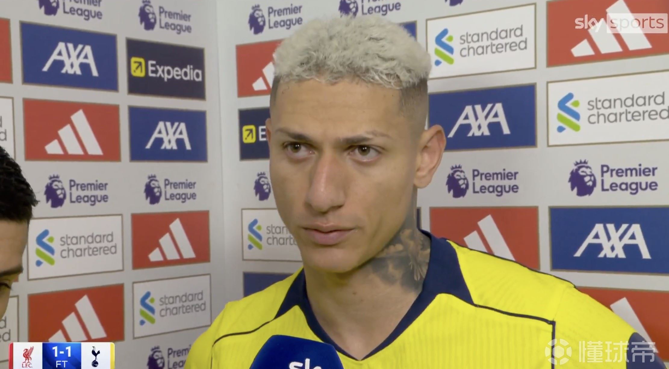英超第30轮,热刺客场1-1战平利物浦,此役打入扳平比分进球的热刺前锋里沙利松赛后接受了天空体育的采访。