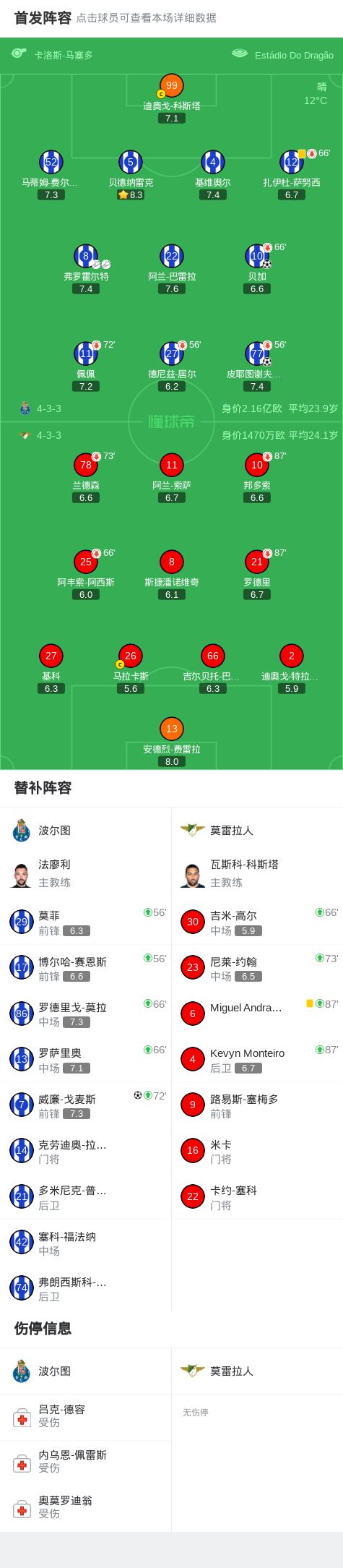 北京时间3月16日葡萄牙足球超级联赛 联赛 第26轮,波尔图主场对阵莫雷拉人。波尔图贝加破门,皮耶图谢夫斯基破门,威廉-戈麦斯破门。最终比分波尔图 3-0 莫雷拉人。