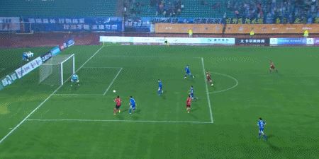 第12分钟,左路传中,谭龙停球后抽射攻门,皮球高出横梁