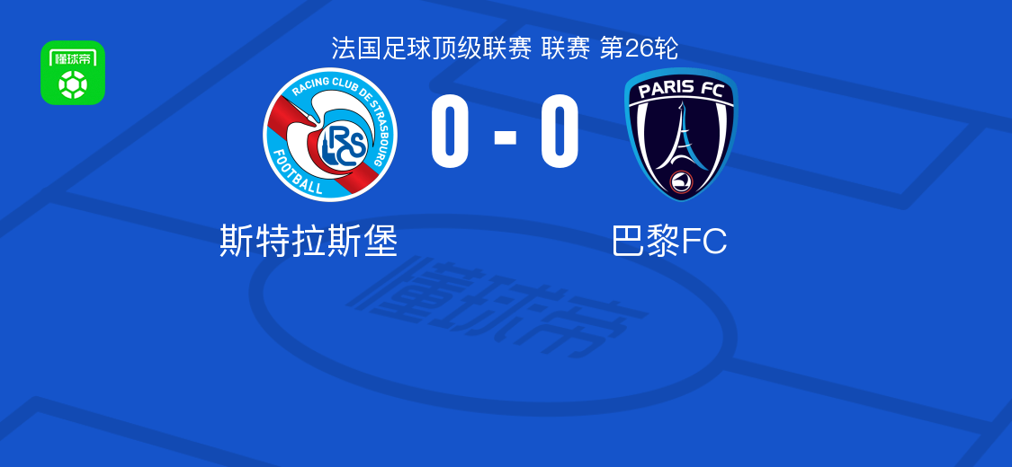 北京时间3月15日法国足球顶级联赛第26轮,斯特拉斯堡主场迎来巴黎FC的挑战。全场比赛结束,双方均未能攻破对方球门,最终斯特拉斯堡0-0战平巴黎FC。
