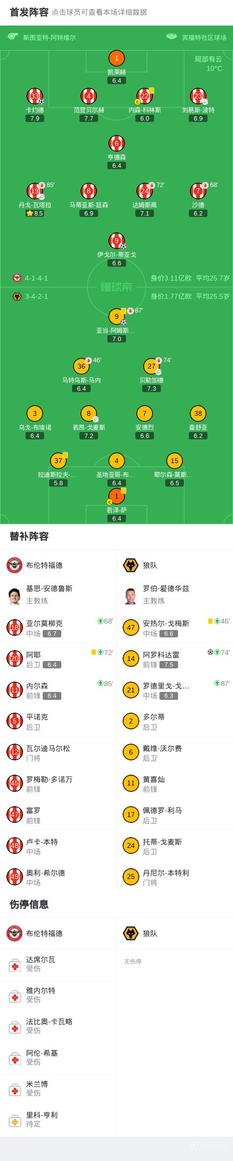 第22分钟,波特传中,卡约德头槌破门,布伦特福德1-0领先