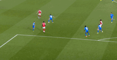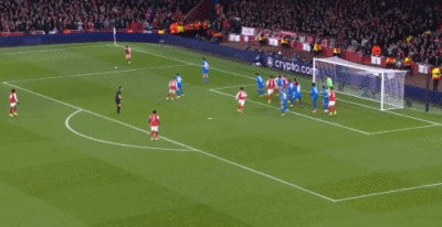 第8分钟,萨卡开出角球,加布里埃尔顶在肩膀上出了底线