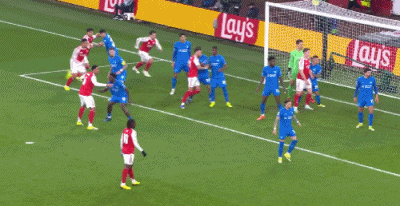 第21分钟,加布里埃尔头球攻门,皮球稍稍顶高