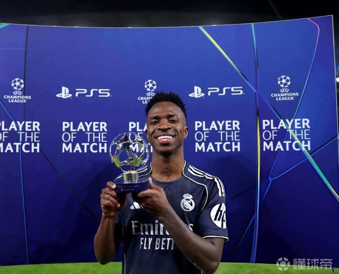 此役客场对阵曼城,首发出战的维尼修斯在上半场主罚点球破门,比赛第93分钟,维尼修斯再入一球,帮助皇家马德里2-1取胜,总比分5-1双杀对手,晋级八强。