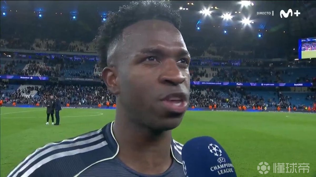 帮助球队在欧冠1/8决赛次回合客场2-1击败曼城后,皇马前锋维尼修斯接受了Movistar+的采访。