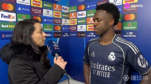 欧冠1/8决赛次回合,皇马客场2-1战胜曼城,维尼修斯赛后接受了TNT体育巴西频道的采访。