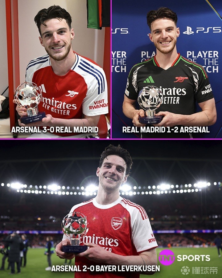 阿森纳在欧冠1/8决赛次回合2-0击败勒沃库森,总比分3-1晋级。此役赖斯凭借出色的发挥摘得全场最佳,如此一来,他在球队最近三次欧冠淘汰赛取胜时均获此殊荣。