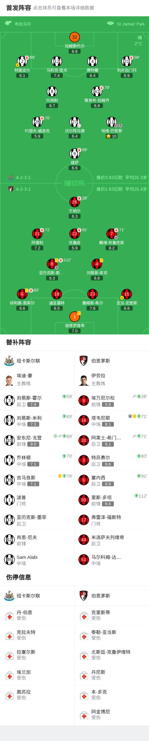 第68分钟,戴维-布鲁克斯远射破门,伯恩茅斯2-1反超纽卡