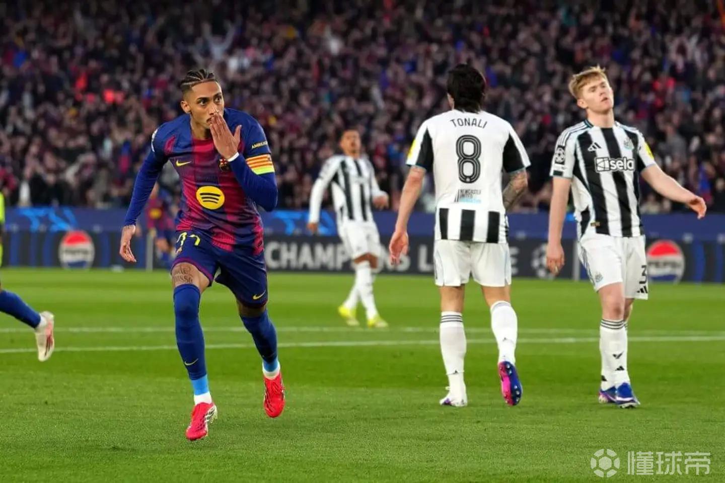 巴塞罗那似乎对纽卡的快速开局感到意外,他们习惯于对手来到诺坎普后收缩防守。但六分钟后,他们就取得领先——机会来自佩德里、亚马尔和洛佩斯犀利配合撕开纽卡防线,随后拉菲尼亚自信终结,10码处一记势不可挡的低射钻入死角。