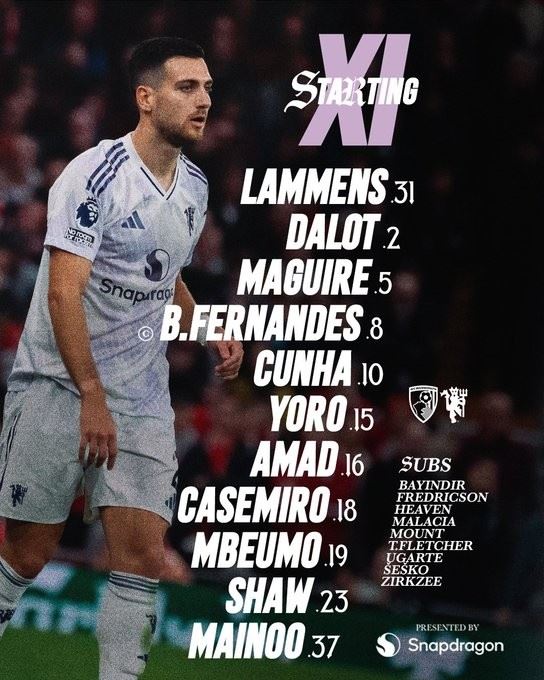 北京时间3月21日凌晨4点,英超联赛第31轮展开一场焦点战役,曼联对阵伯恩茅斯。赛前,双方公布首发阵容。