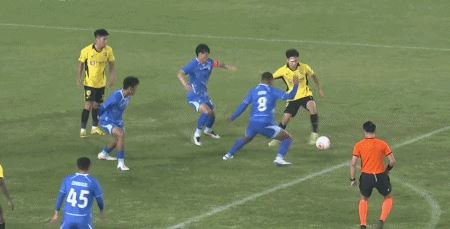 第14分钟,段云子铲球犯规,裁判对其出示黄牌警告