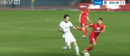 第51分钟,迈达纳传球,直接踢到队友王上源身上