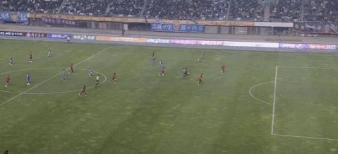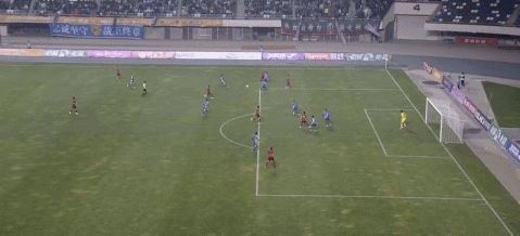 第32分钟,李强禁区内凌空抽射,皮球高出球门