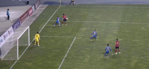 第35分钟,先拔头筹,张煜东禁区迎球低射破门,石家庄功夫1-0