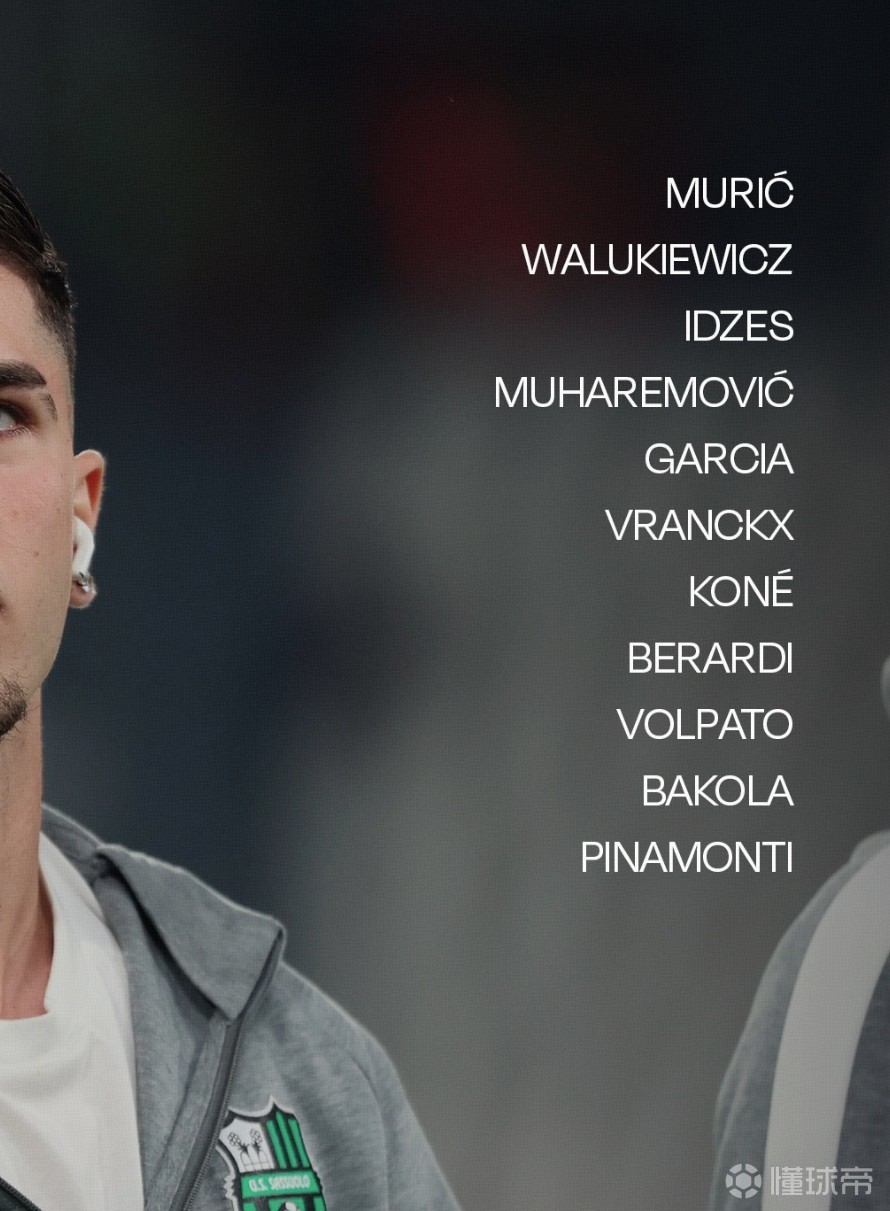 萨索洛首发:49-穆里奇、80-穆哈雷莫维奇、21-伊泽斯、6-瓦卢凯维奇、23-乌利塞斯-加西亚、50-巴科拉、90-科内、7-沃尔帕托、40-弗兰克斯、99-皮纳蒙蒂、10-贝拉尔迪