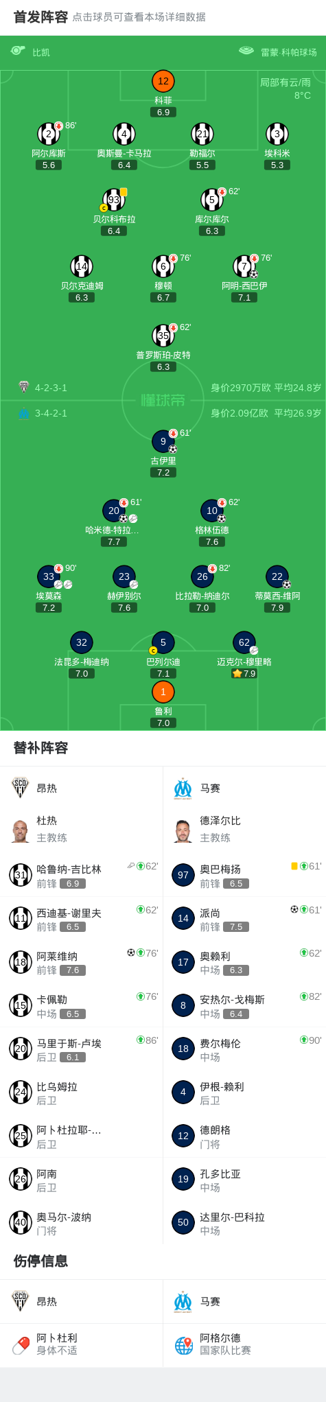 第88分钟,赫伊别尔助攻,派尚低射破门,马赛5-1昂热