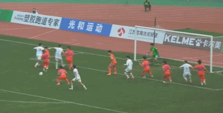 第13分钟,齐龙脚后跟做球,和康豪破门,上海赛更达1-1上海海港B队