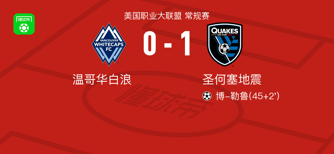 北京时间3月22日美国职业大联盟 常规赛,温哥华白浪主场对阵圣何塞地震。圣何塞地震博-勒鲁破门。最终比分温哥华白浪 0-1 圣何塞地震。