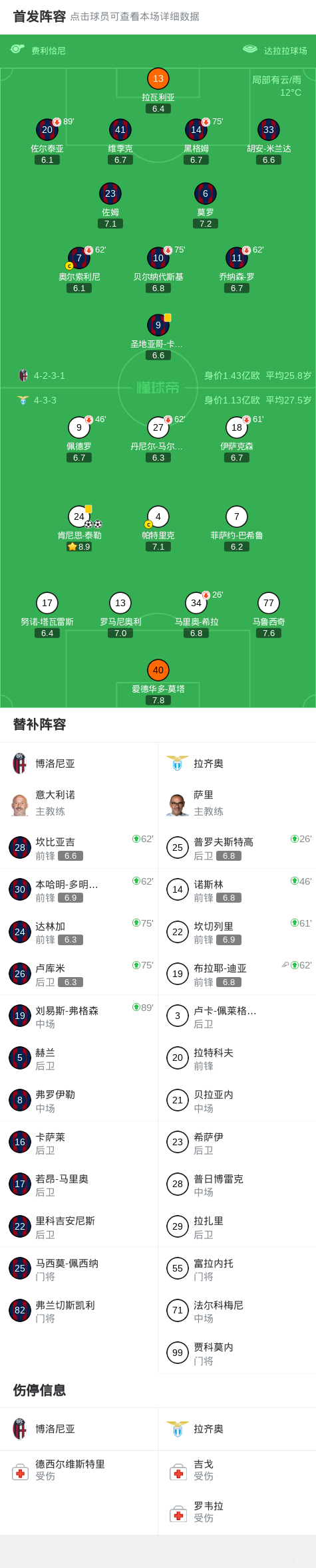 北京时间3月22日意大利足球顶级联赛第30轮,博洛尼亚主场对阵拉齐奥。上半场奥尔索利尼罚失点球,下半场肯尼思-泰勒首开记录,随后肯尼思-泰勒破门扩大比分。最终比分博洛尼亚0-2拉齐奥。