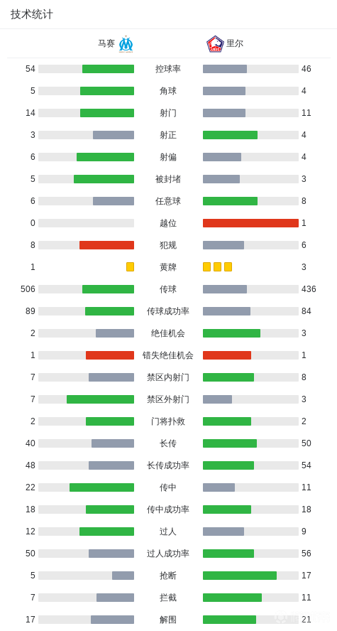 第50分钟,默尼耶禁区抢射,皮球打入近角,马赛1-1里尔