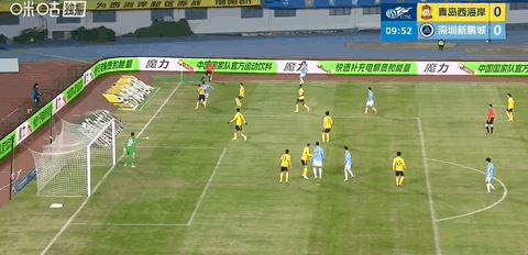 第9分钟,韦斯利头球被刘世博扑出,随后新鹏城的两次射门均被队友挡出