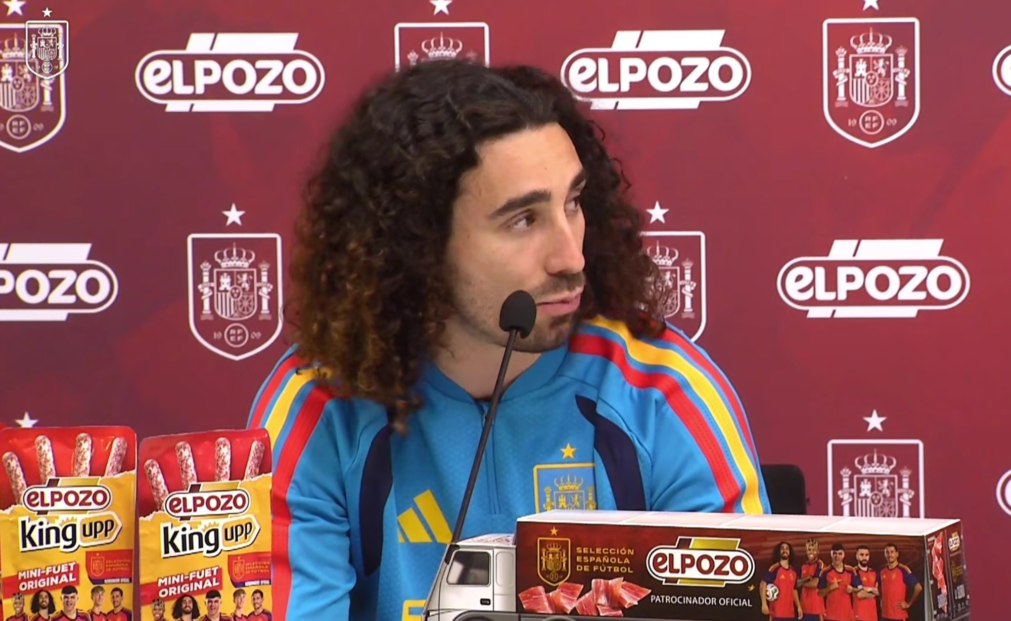 日前,西班牙火腿企业elpozo官宣成为国家队官方赞助商,西班牙国家队的两名后卫库库雷利亚和赫伊森应邀出席了新闻发布会,以下为他们的发言实录。