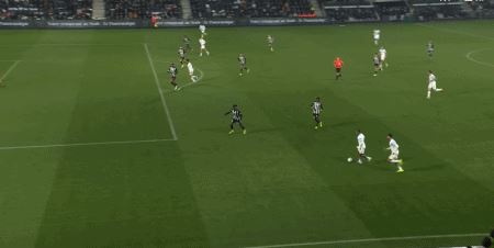 第90+2分钟,吉比林外脚背横传,阿莱维纳推射破门,昂热2-5马赛