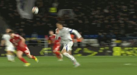 第60分钟,丹尼尔-詹姆斯禁区内晃开角度起脚射门,皮球击中横梁弹出