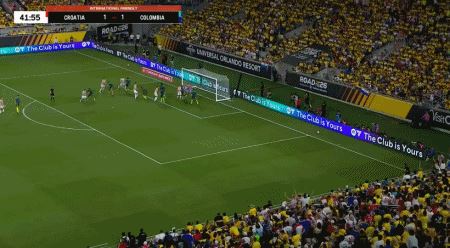 第6分钟,武什科维奇外围远射破门扳平比分,克罗地亚1-1哥伦比亚