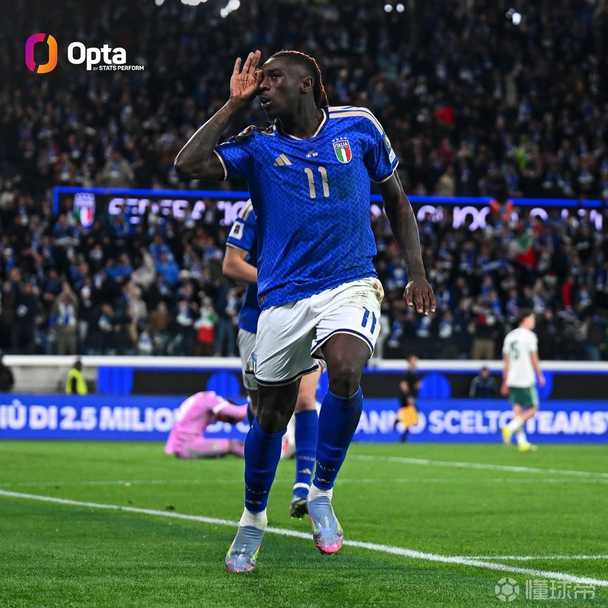 此役对阵北爱尔兰,首发出战的莫伊塞-基恩在比赛第80分钟打入一球,帮助意大利队2-0击败对手。