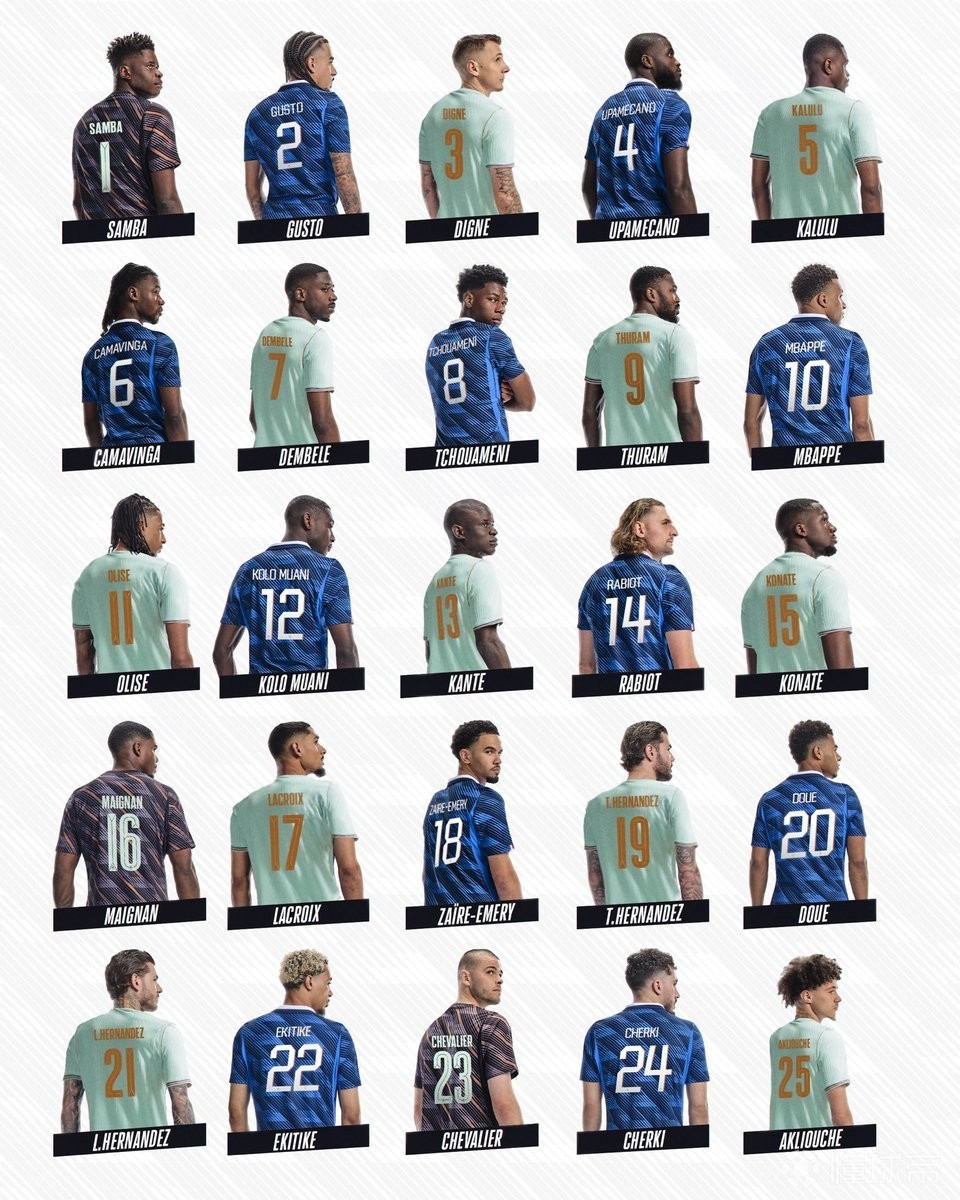 法国国家队公布了新一期大名单的球衣号码,姆巴佩将身穿10号球衣,马库斯-图拉姆穿9号球衣。